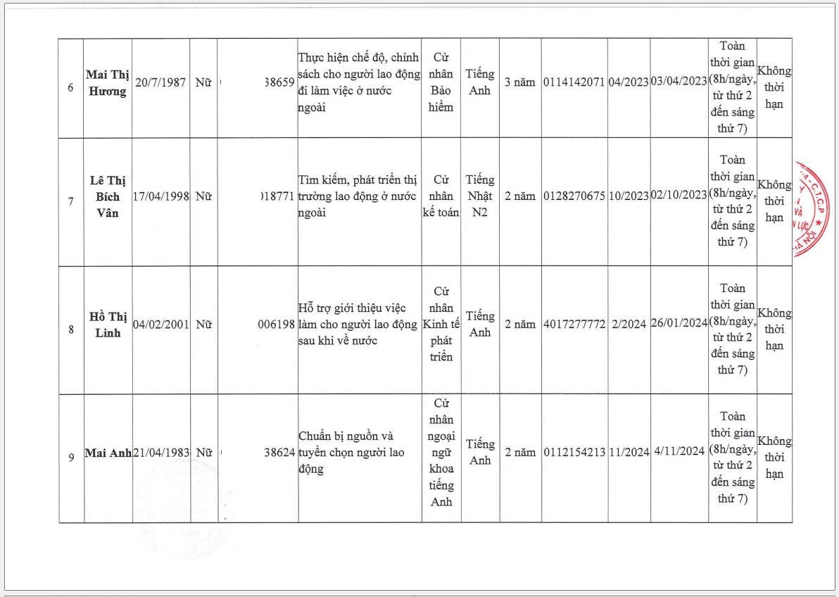 DANH SÁCH NHÂN VIÊN NGHIỆP VỤ